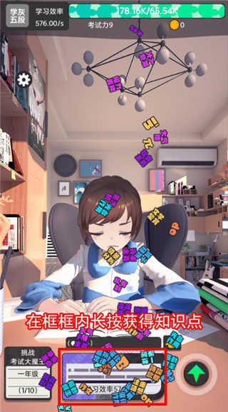 如果知识点(上方绿色进度条)不够,可以长按中间的学习面板持续获得知识点哦。