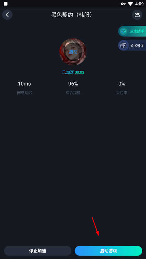 1、在本站下载黑色契约,游戏需加速器启动,打开加速器,找到该游戏,然后点击右侧加速;