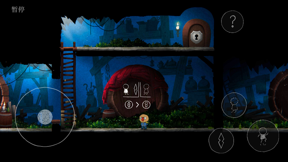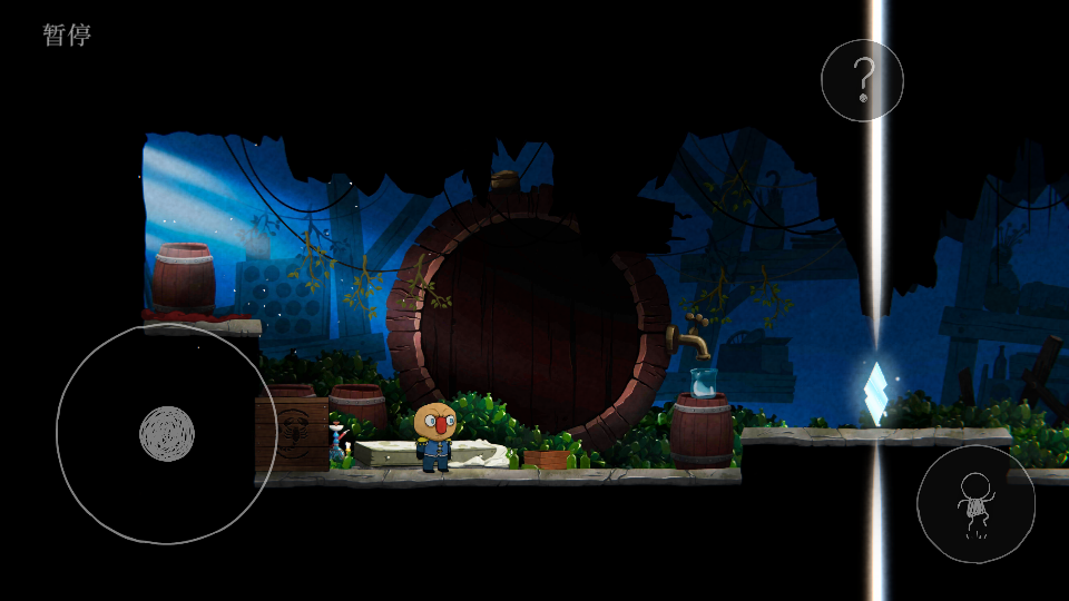 2、我们需要通过摇杆操纵人物移动或者推动物品,点击跳跃来跳上高处。