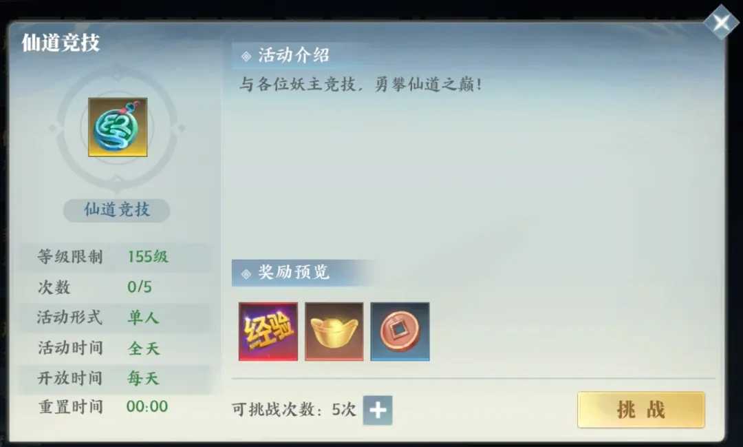 组队参与,前15分钟为积分赛,胜利获得100积分,失败获得50积分。根据积分获得奖励,积分越高奖励越多。15分钟后为淘汰赛,胜利晋级,失败淘汰。获得冠军的队伍,奖励 <仙道战神> 称号。