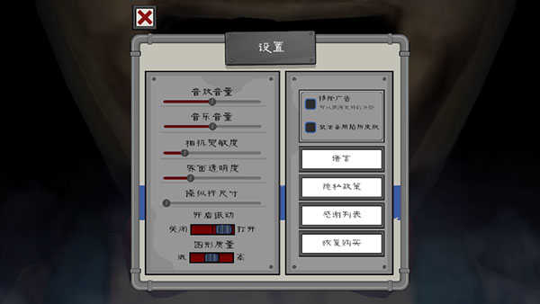进入设置,可以设置音乐、相机灵敏度等游戏参数。