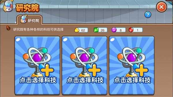 研究院可以用宝石开启多种科技(目前有5种科技可供选择),科技用一句话来概括就是为期2天的各种增益buff。可以看到,能够同时开启的科技最多3个,并且每种科技的增益时间都是48小时。下面我们来看看各种科技的妙用吧: