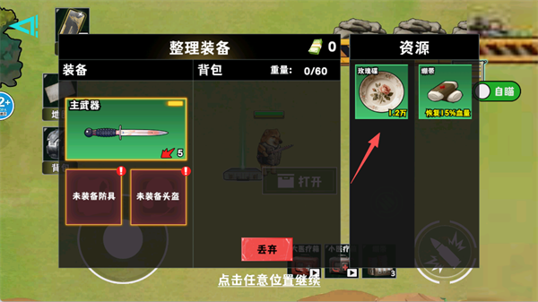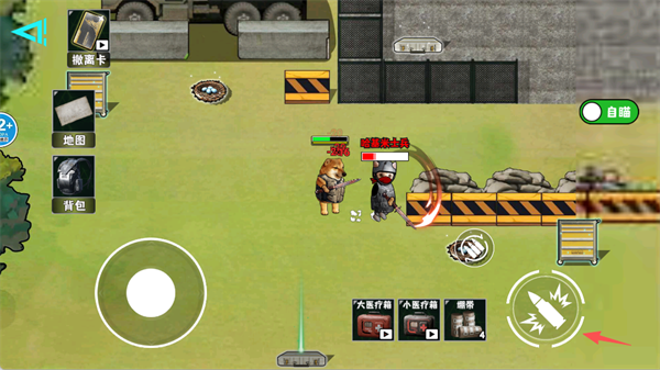 4、遇敌人时点击攻击,同时备足绷带、医疗箱及时回血,保证续航能力。