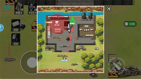 6、查看地图定位当前位置,避开BOSS区域,朝着撤离点方向推进,减少不必要的战斗风险。