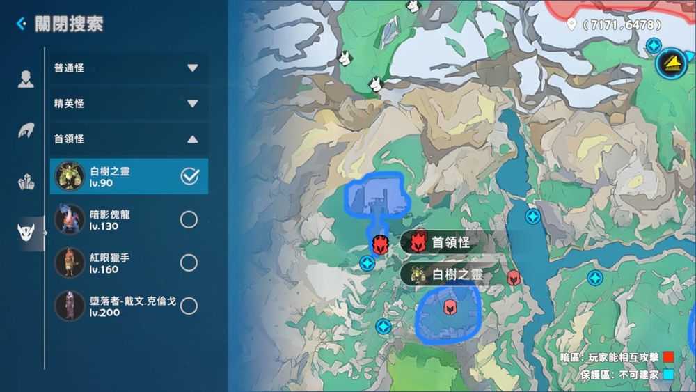 白树之灵就在这里的大平台上面,半天重生一次,运气好的话可以遇到,也可以靠家园圈的人通风报信