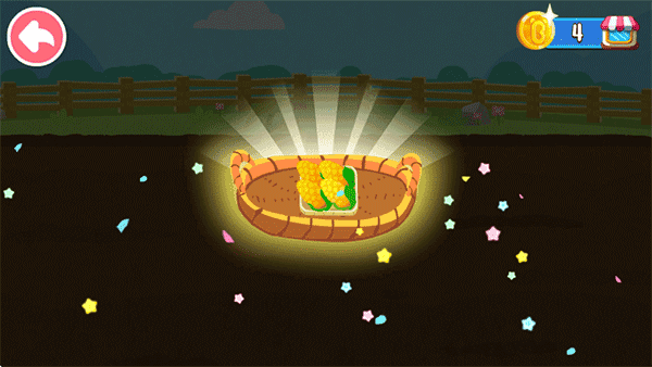 1、进入奇妙农场宝宝巴士游戏后,点击商店帮你的小伙伴购买所需的商品,然后进入农场种植粮食;