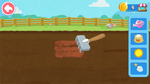 奇妙农场宝宝巴士游戏是一款儿童早教类的益智启蒙游戏。玩家在游戏中扮演一名农场主,经营自己的奇妙农场,包含种植果蔬、养殖动物、农场经营等玩法,带有尝试认知功能,让玩家能更好的了解认知植物的生长过程,动物的生活习性等。在这期间还会有鸟来捣乱吃我们的蔬菜,而我们还需要赶走它们,直到蔬菜成熟,这一系列都是真实模仿了我们现实生活中的种植,可以让宝宝了解到我们的蔬菜的来之不易。