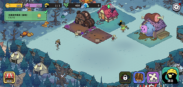 1、前面会有一段强制指引,帮助玩家了解基本操作。然后就可以来扩建农田。