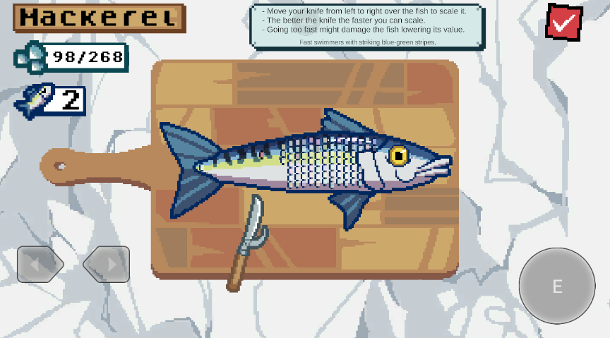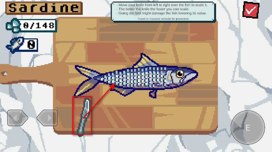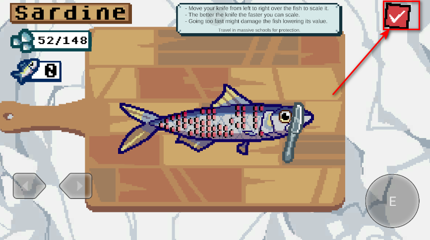 5、鱼身上所有的鳞片都需要刮干净,完成后点击按钮即可获得奖励。