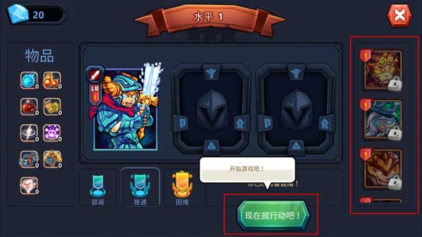 2、在右边的选项框中选择免费的英雄加入到队伍中,然后选择游戏难度并开始行动。