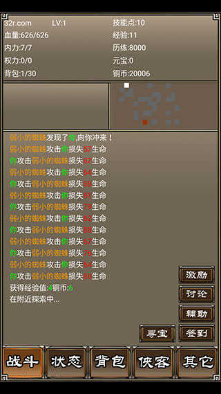 2、在【战斗】页面,玩家会自动寻找怪物攻击练级,整个战斗过程也是全自动的,无需玩家手动操作,战况也会显示在屏幕中。