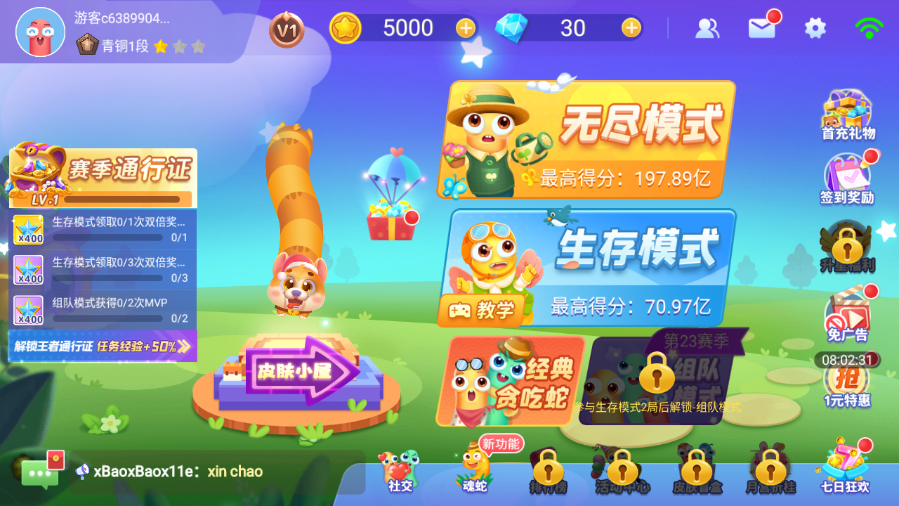 贪吃蛇在线是一款非常好玩的休闲类游戏,游戏传承经典玩法,好玩刺激过瘾,在原有的基础上升级为对战版手游,精美Q萌可爱的画风画面,多样有趣的游戏关卡,不同的皮肤特效搭配,走位灵活自由,操作简单,可以带给玩家全新的游戏体验。游戏支持全球玩家同场对战,提供经典等多种模式,搭配丰富皮肤和搞怪地图,既能单局快速开玩,也能组队策略对抗,让你随时随地享受指尖上的蛇王争霸。