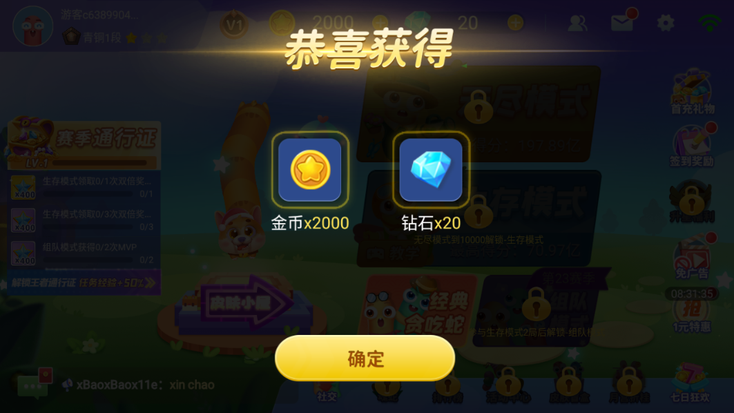 1、首先,玩家在本站下载并安装好游戏之后,打开进入,初次进入游戏就可以获得金币和钻石奖励;