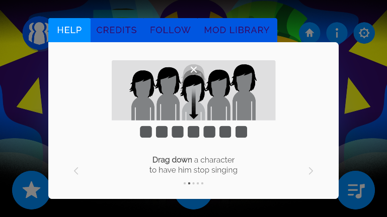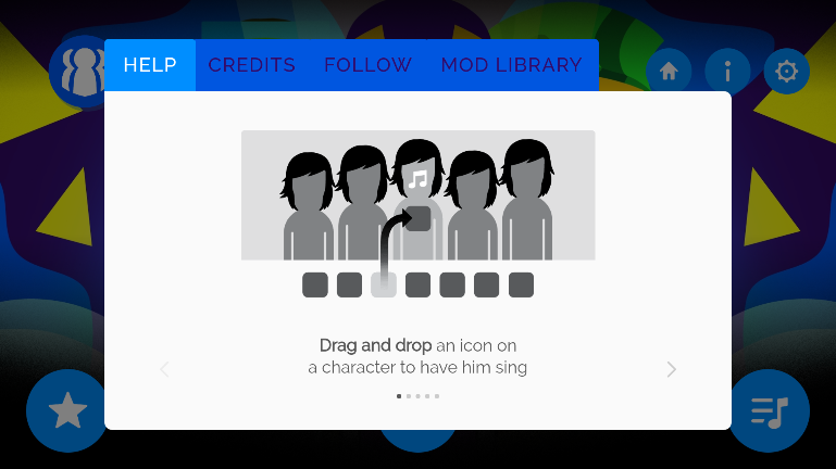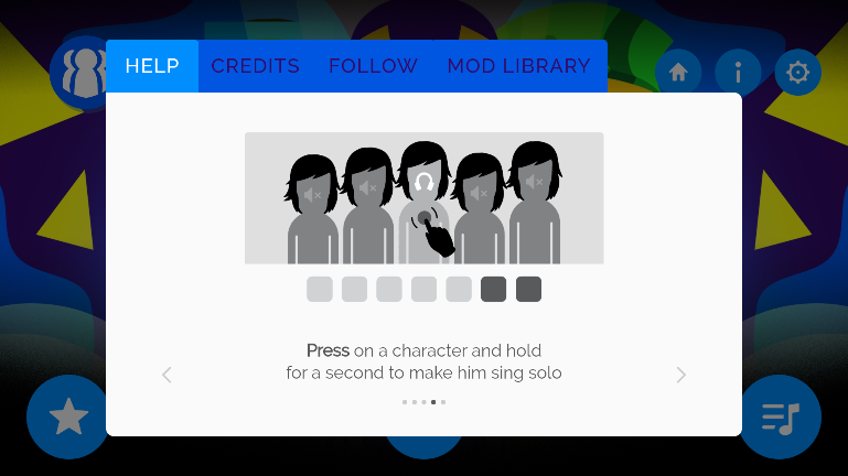 5.要解锁增强歌曲的动画合唱,请将不同颜色的装饰拖动到角色上以添加自己的音乐。