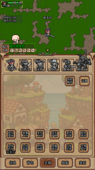 像素冒险村是一款像素风冒险养成手游。玩家需要组建自己的冒险小队,前期可选择战士、牧师、法师等基础职业,随着等级与资源的积累,还能逐步解锁枪骑士、弓箭手、重骑士等职业,形成六人编队的多样组合,不同职业之间的技能机制与定位差异。在像素冒险村为玩家提供六大职业体系,不同职业的玩法和技能都各不相同,有感谢的玩家可以在游玩的过程中进一步体验。