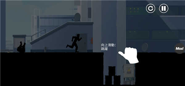 5、然后跳刀墩上再起跳,去到前面那个人那段路,大概到那块公告牌的位置,向下划一下屏幕去到这关的第二个隐藏场景。