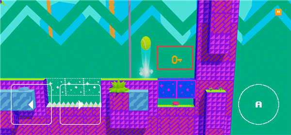 1、进入扣扣兽手机版第四关,向前跳,按一下地上的红色开关,弹射到上面平台。