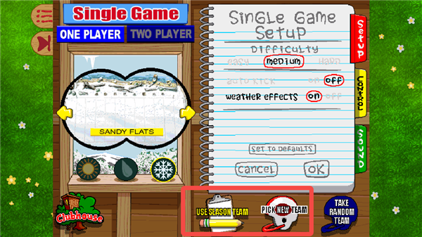 1、进入后院橄榄球1999手机版,游戏中有两个模式,单人模式(Single Game)和赛季模式(Season Play)。