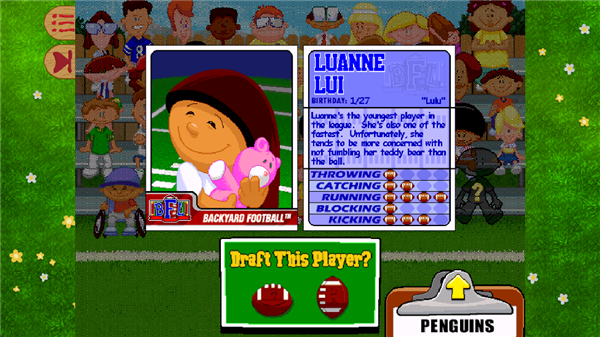 后院橄榄球1999是一款美式画风的橄榄球体育模拟游戏,玩家将在此组建自己的球队,体验橄榄球的快乐。游戏拥有单人模式和赛季模式,玩家在单人模式中可以自由设计队徽和组建球队,并选择比赛的场地以及天气状况,而在赛季模式中,玩家可以从30位《后院运动》中的经典角色以及传奇职业球员中挑选队员,与其他15支球队展开角逐。无论是新手还是资深玩家,紧跟潮流的脚步,一触即发的比赛等你来征服!