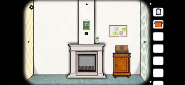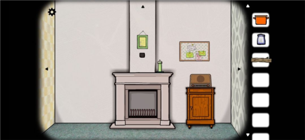 来到下一个场景,壁炉上摆放着蜡烛和相框。一旁上锁的柜子上,有一台收音机以及告示板。