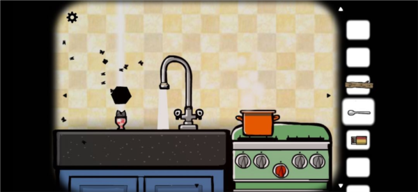 来到厨房,将锅接水后放在煤气灶上,打开白色开关,用火柴点燃。之后将哈维的蛋丢进锅中煮, 一阵黑烟后蛋熟了。放在一边的固蛋器上用汤匙敲碎蛋壳,从里面飞出了大量黑色的飞蛾。