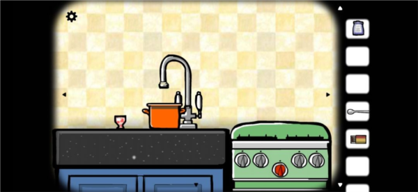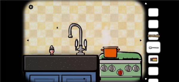 来到厨房,在厨房的柜子里搜寻过后,得到一包鸟食、一口锅、一块木头。
