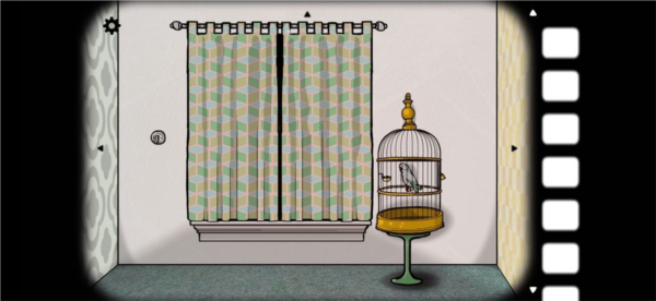 来到下一个场景,一扇拉上窗帘的窗户,一旁的鸟笼里关着一直鹦鹉(哈维)。