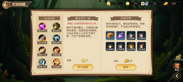 生活技能是要在友友加入公会后开启的。在开启了生活技能后,友友们可以通过消耗绑定金来学习相应的生活技能。(每个生活技能都和公会的建设等级挂钩)