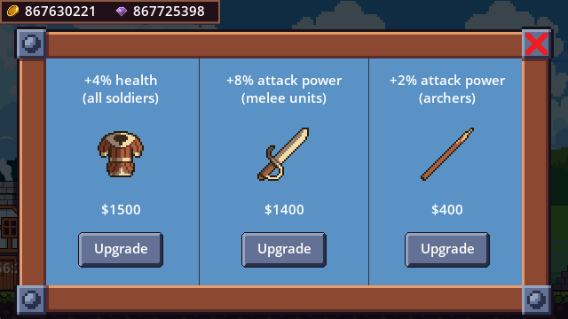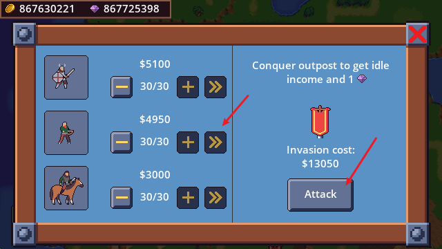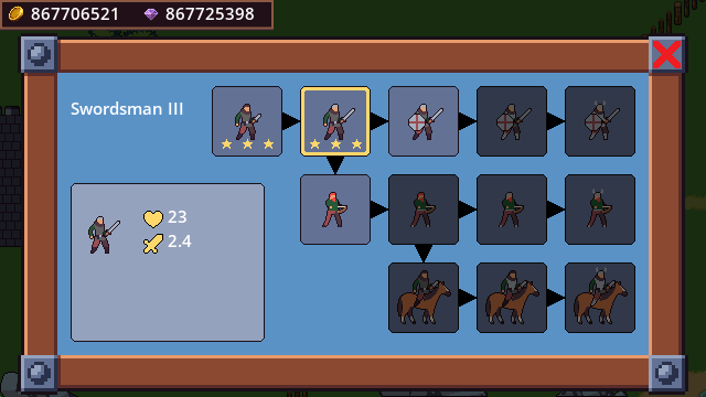 7、可升级的士兵、骑士、弓箭手和快骑兵随时为您服务;