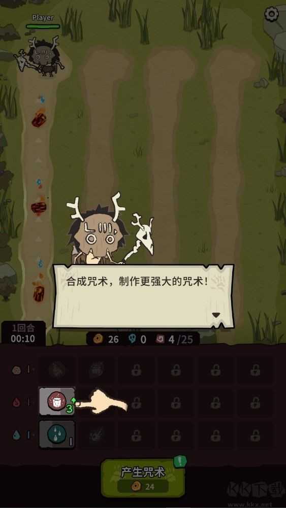 3、三个相同咒术可合体升级、变成更强大的咒术、增强战斗能力;