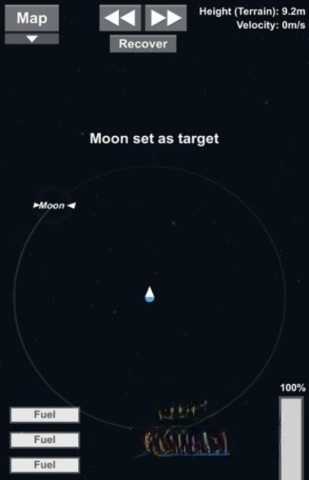 2、完成火箭制作后,把目标设定为月球,同时将起飞时机设定在月球处于地球西北方向之时。