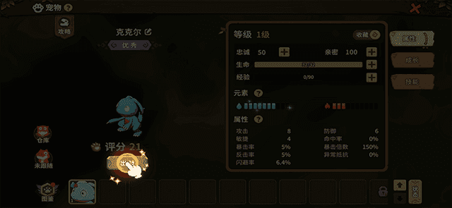 宠物生即死,属性成长随机浮动,依据成长属性条,宠物可以划分为多个类型