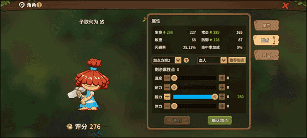 2.玩家如果走的是防御、敏捷,可以针对性的去提升耐力、体力、速度等属性。也就是说加点时,玩家需要明确角色是走哪个方向,在这个方向准备投资多少。确定之后,再对自由属性点进行分配即可。