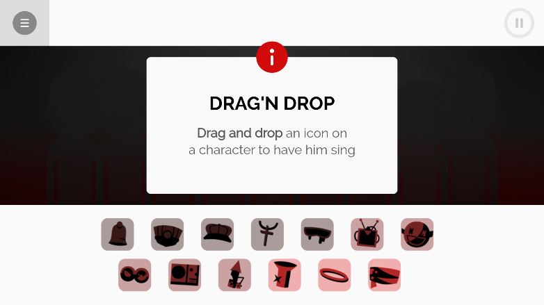 拖拽操作:将角色(如“黑帽子”)和装饰物(如“铜锣”“雨伞”)拖至音符编辑区的轨道上,每个模块对应特定音效(如鼓点、电子琴声)。