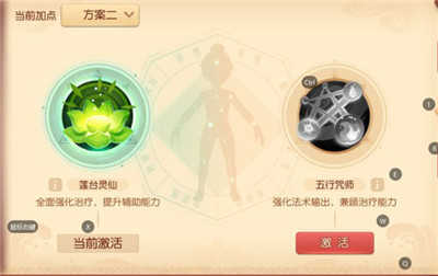 这里以普陀奶爸为例,游戏自带的加点系统有两套,加点系统可以想换就换,可以看你在副本里当什么角色来决定。