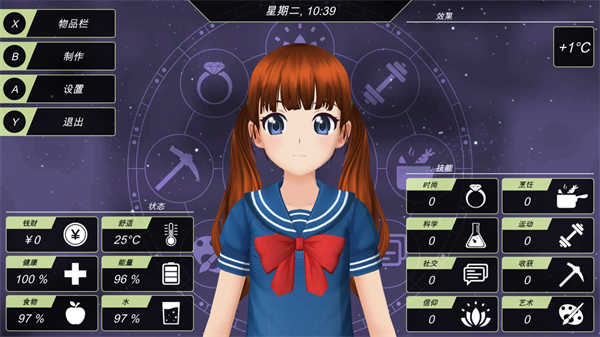 您的角色具有健康、饥饿、口渴、能量和舒适度统计数据。在游戏当中,你需要平衡有限的资源,照顾角色的需求。如果你忽视了这些,你最终可能会生病并被带到学校医务室恢复。