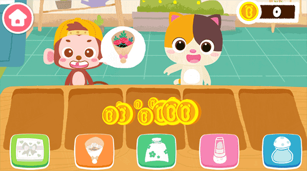 5、小动物们接到花之后会给小朋友们一些货币哦!