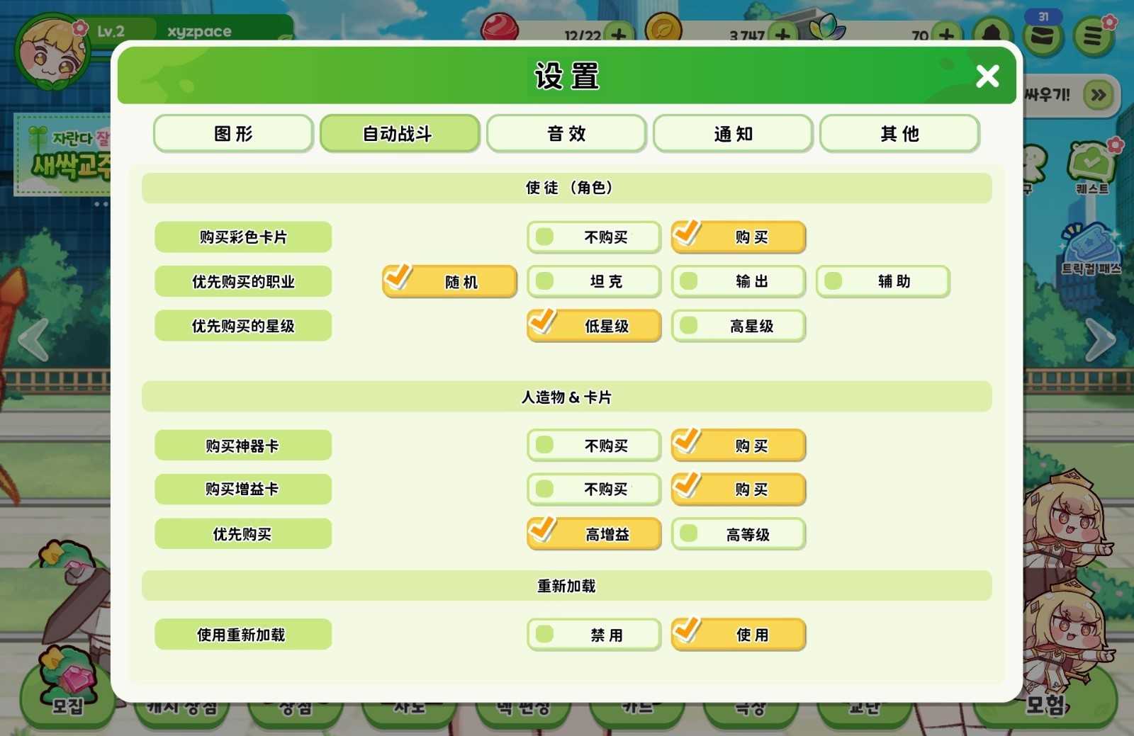 3、设置自动战斗页面
