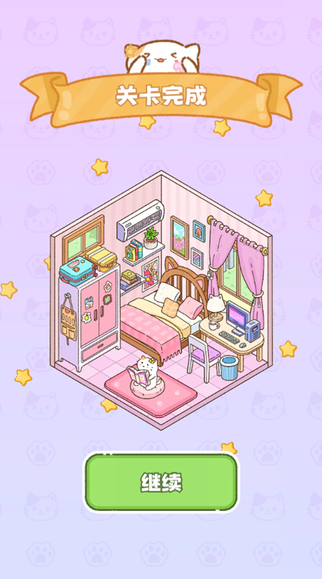 猫咪整理师是一款休闲解压的收纳整理游戏。玩家将在各种温暖和甜蜜的场景中与柔软的小猫一起工作。核心任务是用镊子夹紧散落在各处的物体。准确定位它们,并在完全吸收的愈合过程中获得沉浸式的满意感。游戏设计由几个主题级别组成,新鲜度不断在线,每次游戏完成时,都可以获得充分的成就感。玩家还可以装扮自己的房间,根据自己的喜好选择家居、墙饰、摆件、地面等元素进行搭配,打造属于自己的喵喵房间。