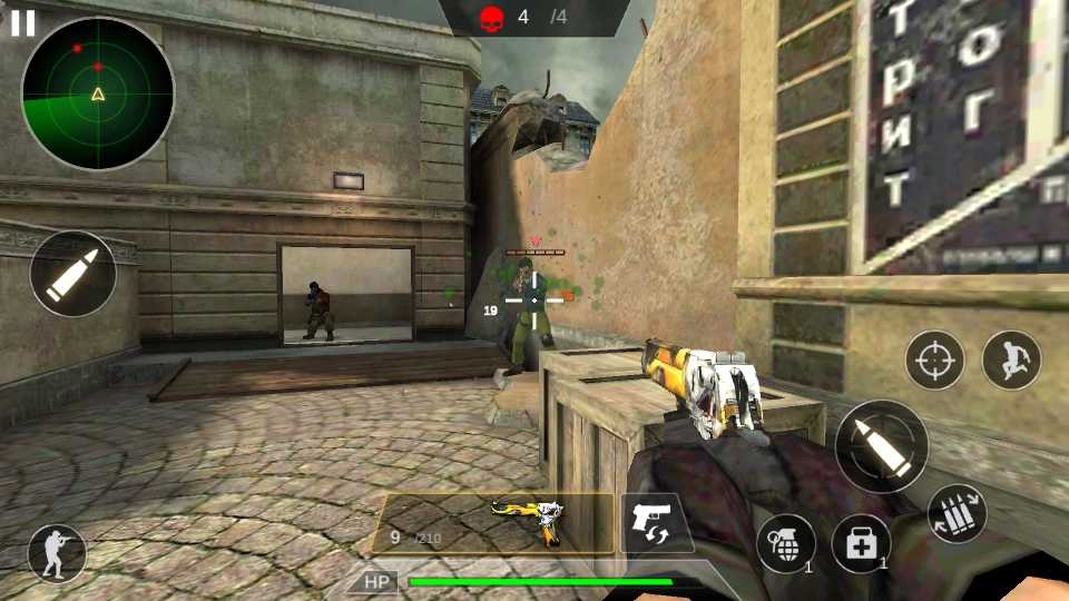 3.滑动屏幕左侧为人物移动,右侧为开火等功能键。