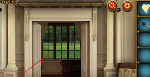 2、点击左边场景【哥布林房间】,点击中间下面的齿轮;在齿轮旁边拿到【铁链】;用【八边形钥匙】打开机关,在地上拿到【镰刀】。