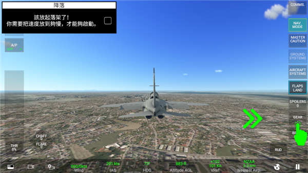 6、再点击屏幕右下角的“GEAR”,放下起落架。