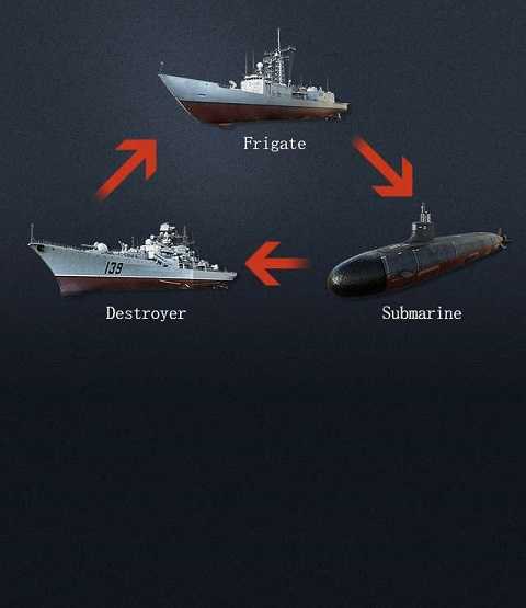 类型表:驱逐舰>护卫舰>潜艇>驱逐舰
