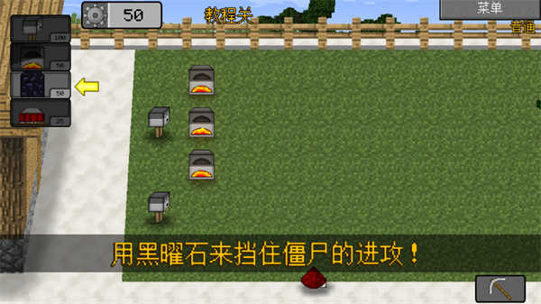 2、最坚固的黑曜石能阻挡僵尸更长的时刻,在最前排放置能给你带来更多时刻;