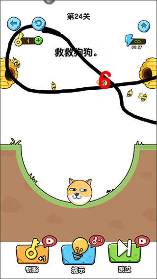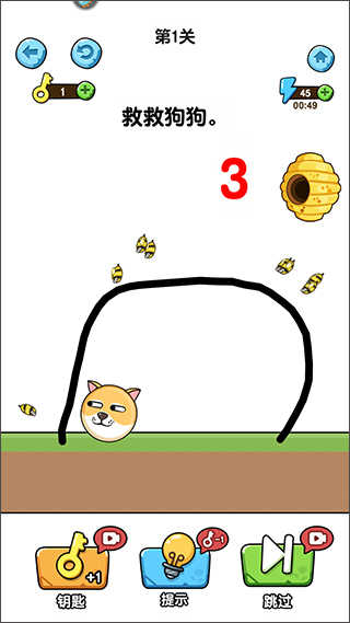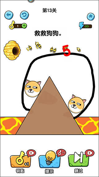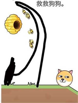 2、滑动屏幕来为狗子画一条线,蜜蜂是无法穿过这条线的。