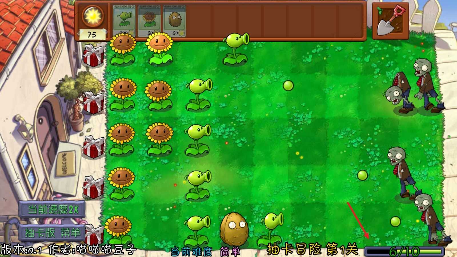 1、白色低级卡(15%概率抽取):三线射手、裂荚射手、豌豆投手、低坚果、双线射手、反向豌豆射手。