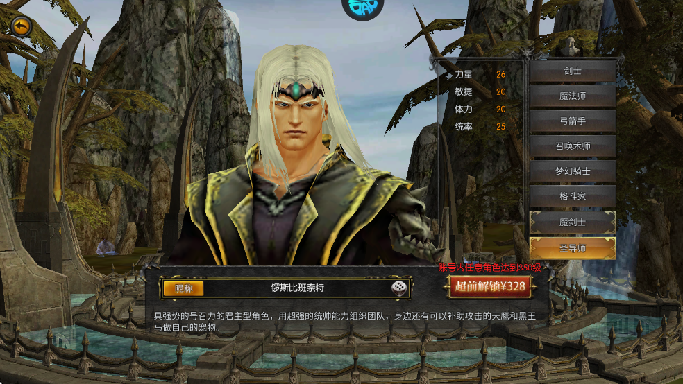 具强势的号召力的君主型角色,用超强的统帅能力组织团队,身边还有可以补助攻击的天鹰和黑王马做自己的宠物。