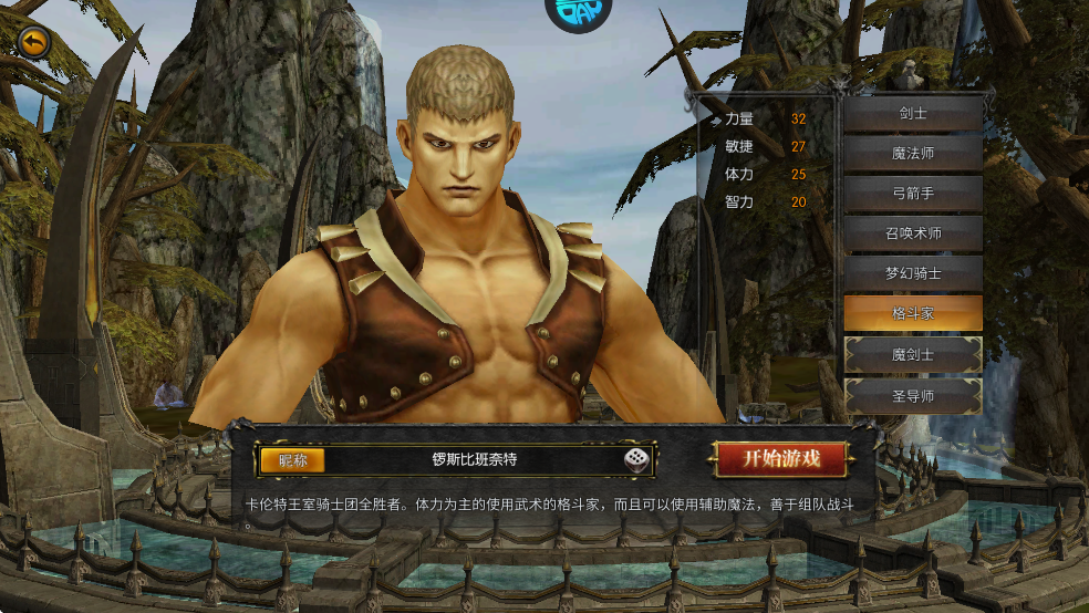 战士的王国,勇士的后代,以强硬的体力和剑术为本的近距离攻击型角色,具使用剑、斧、杖等多种武器的能力。