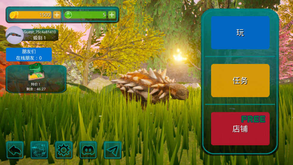 8、别忘了定期前往商店领取免费的金币和宝石,助力你的恐龙成长和生存探险。