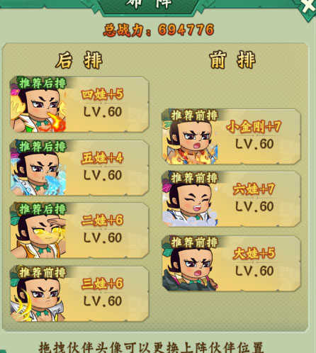 六娃虽然是攻击定位,主要是单体攻击,技能可以提升自身闪避率,同时兼具减防debuff,与三娃同时上阵可以激活合击技能,适合放在前排二号位。